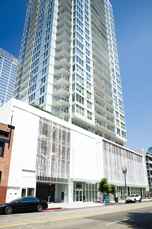 On the upper amenity level, BŌK Modern designed a unique, crown-like structure. By utilizing only folded panels and no other structural elements, BŌK was able to supply a completely autonomous system with laser cut openings that will be internally lit at night to provide a dramatic, eye-catching apex for this luxury high-rise.