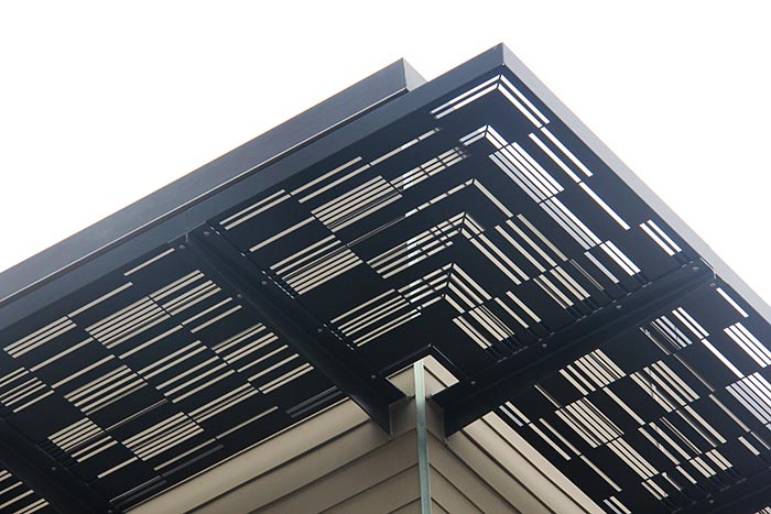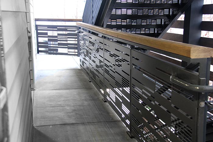 Other EnFold Façade elements on the project include Juliette balconyies in anodized aluminum, cornice sunshades, guard railing and a pedestrian entrance gate finished in the same rust-effect finish.