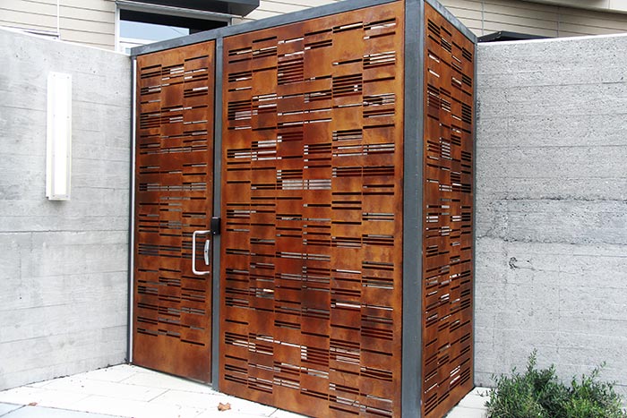 This finish is perfect for clients who want the look of Cor-Ten steel without the rust drips that build up over time. This special paint contains iron ore powder and is applied with acid. The rust effect develops overnight and is almost impossible to differentiate from actual rusted metal.