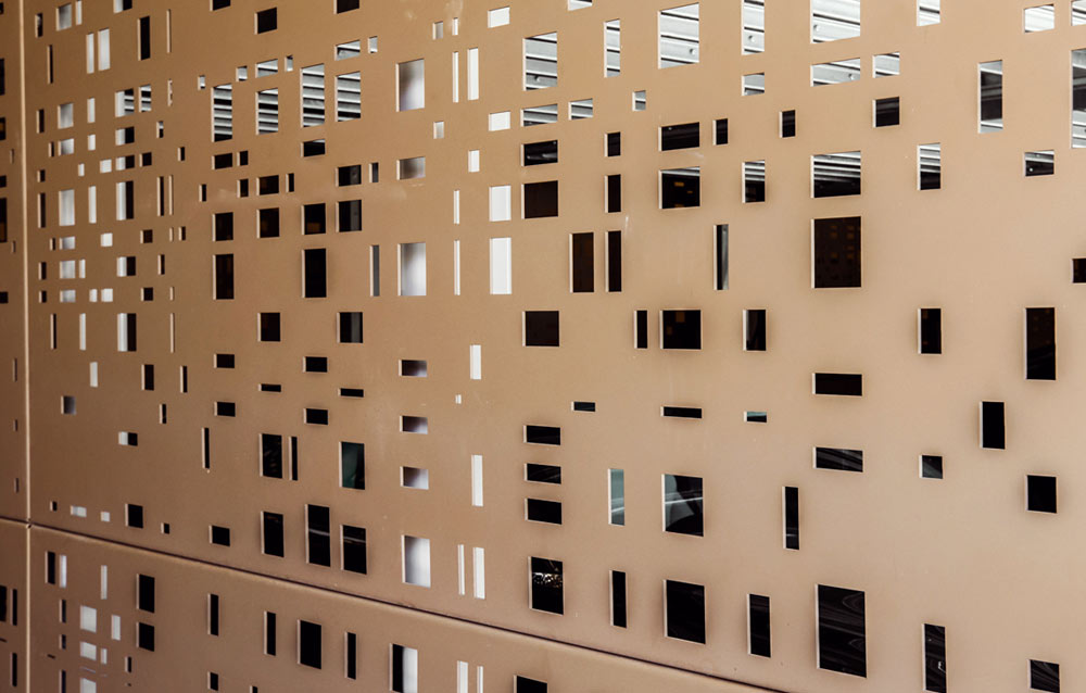 EnFold Façade can provide a simulation of our pattern on your project through advanced 3D renderings.