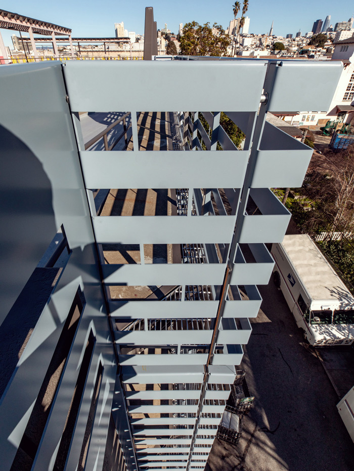 The architects for the city conceived a striated pattern with colors that evoke San Francisco’s emblematic fog. The EnFold Façade panels also serve as guardrails, resulting in a clean and simple, yet striking, design that is both more durable and easier to maintain than the stucco that they replaced.