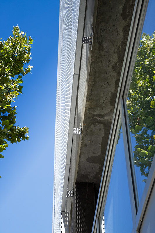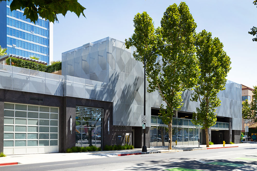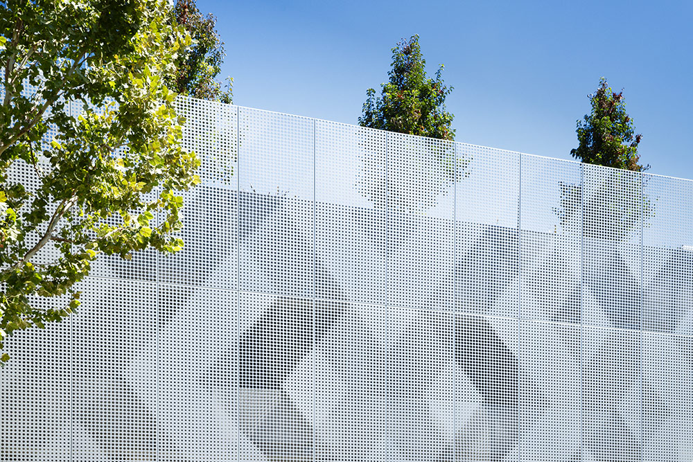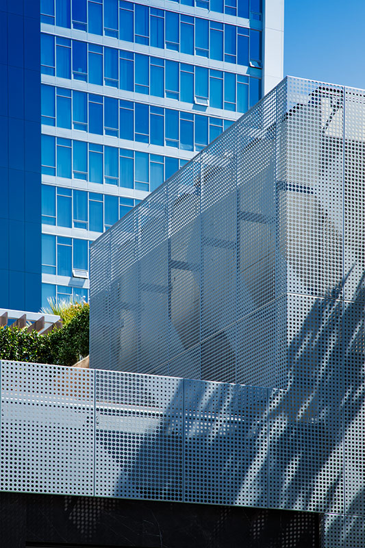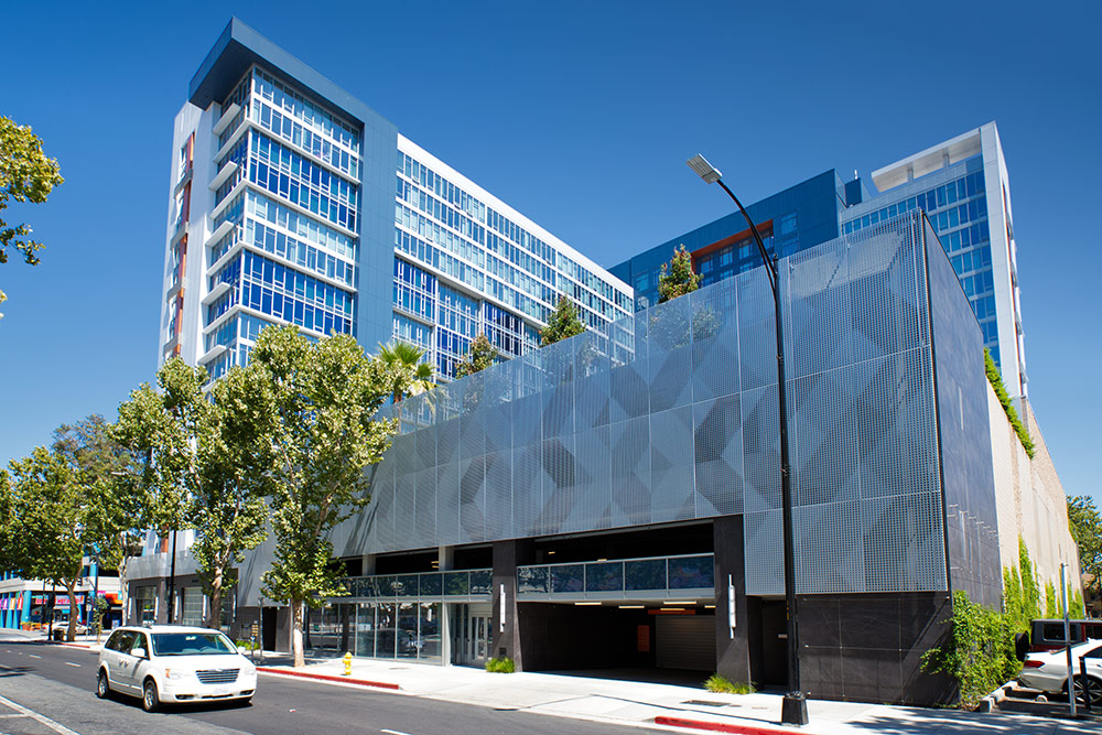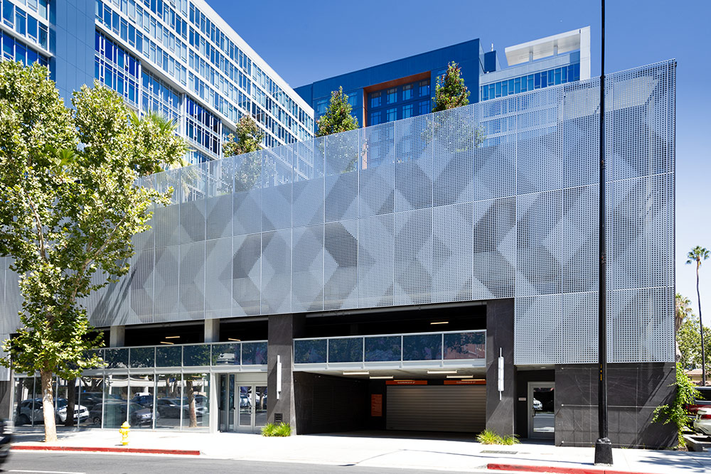 For The Grad San Jose, a new student housing development at San Jose State University, BŌK Modern brought to life a custom pattern designed by LUX in our standard bracketed wallscreen, which was installed over the garage.