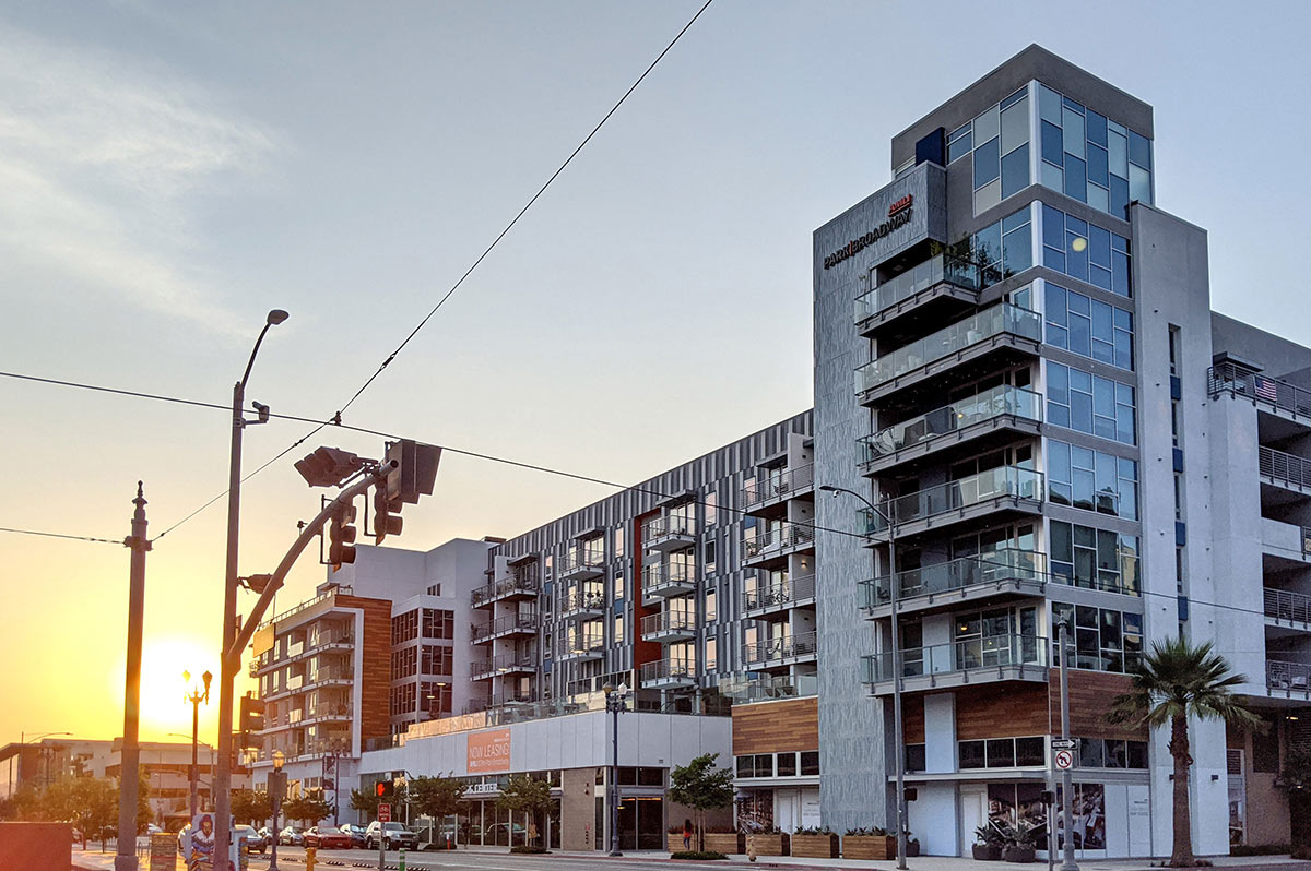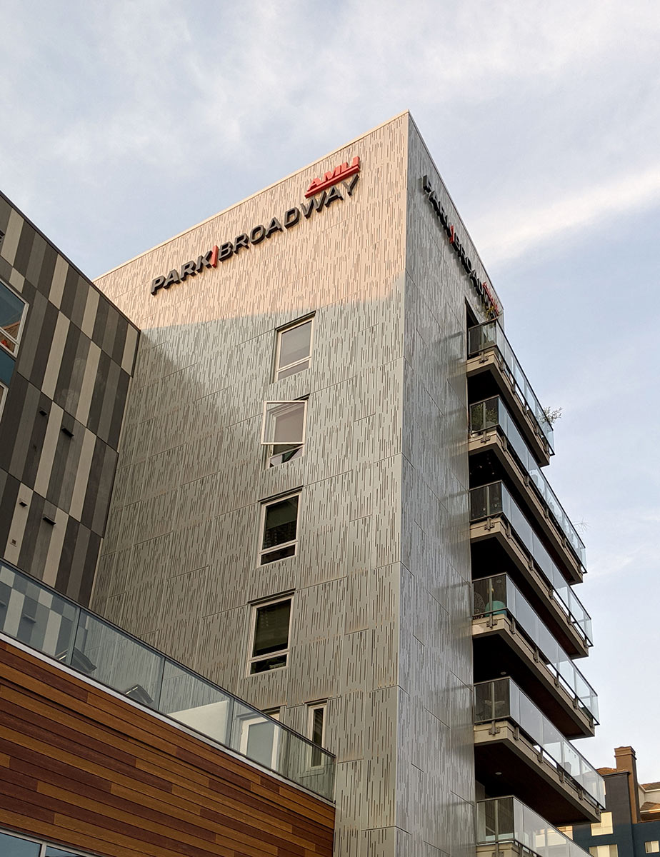 AMLI Park Broadway, positioned in the heart of Downtown Long Beach, integrates marine calm with contemporary flair. KTGY designed the mixed-use development which features our custom rainscreen systems at this seven-story LEED Silver luxury multi-family residence.