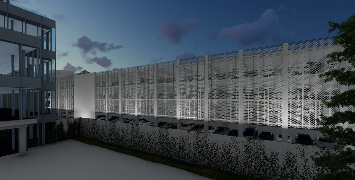 EnFold Façade can provide a simulation of our pattern on your project through advanced 3D renderings.
