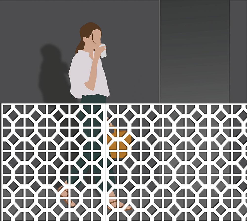 EnFold Façade can provide a simulation of our pattern on your project through advanced 3D renderings.