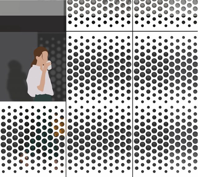 EnFold Façade can provide a simulation of our pattern on your project through advanced 3D renderings.