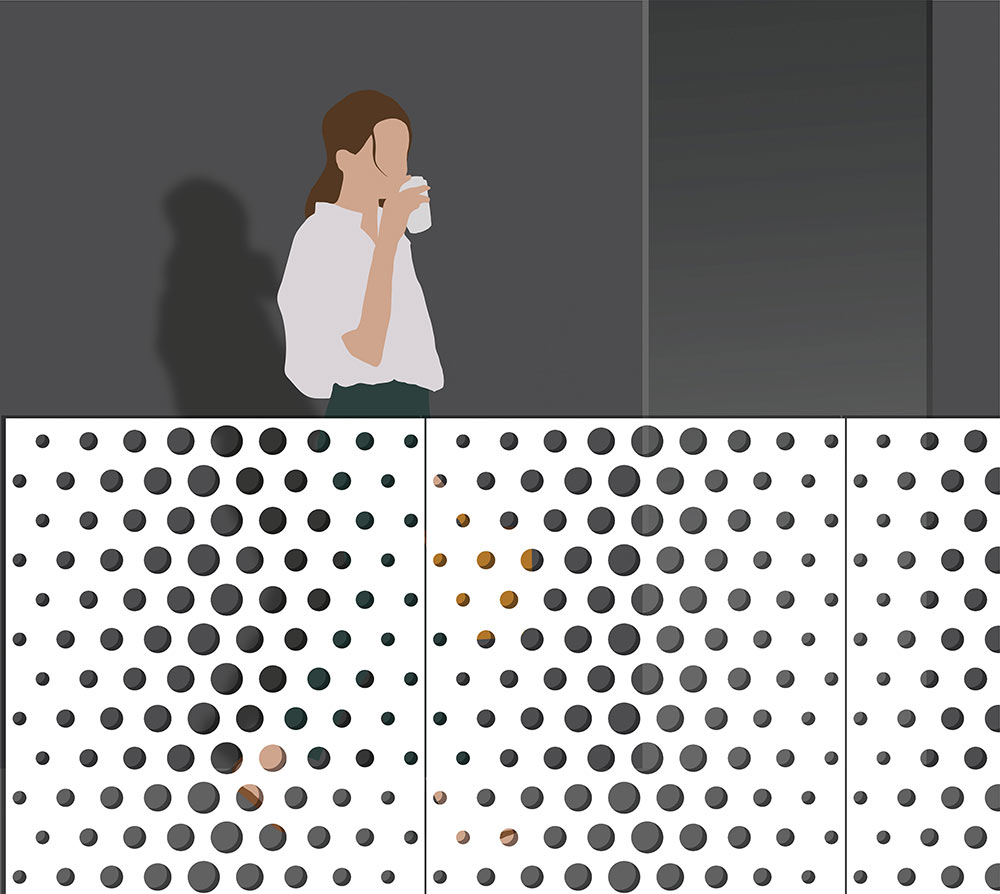 EnFold Façade can provide a simulation of our pattern on your project through advanced 3D renderings.
