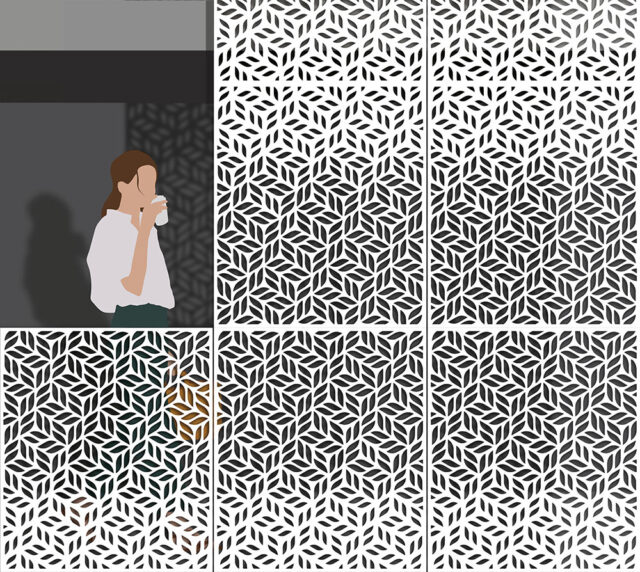 This pattern conforms to the 4” sphere rule for stairs/guardrails