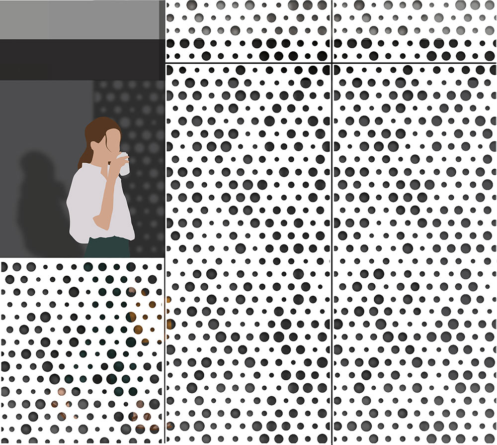 EnFold Façade can provide a simulation of our pattern on your project through advanced 3D renderings.