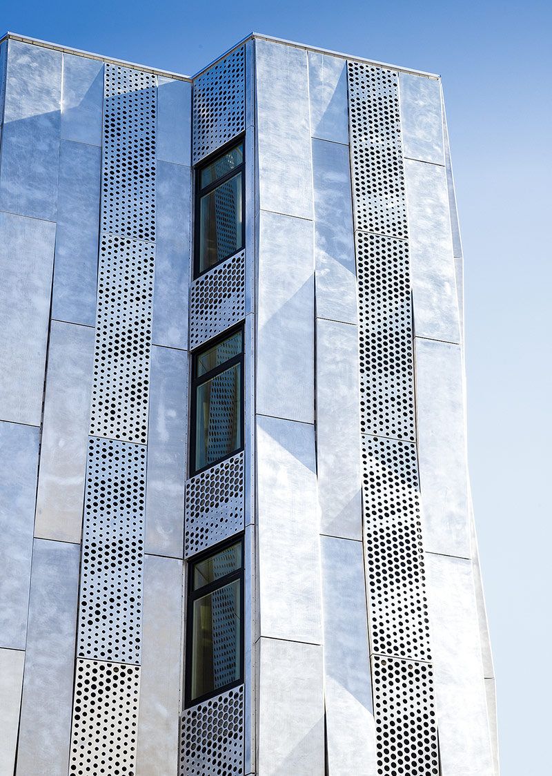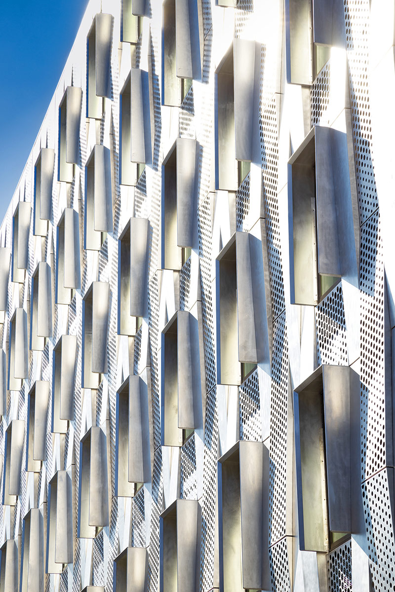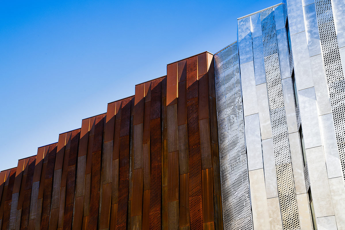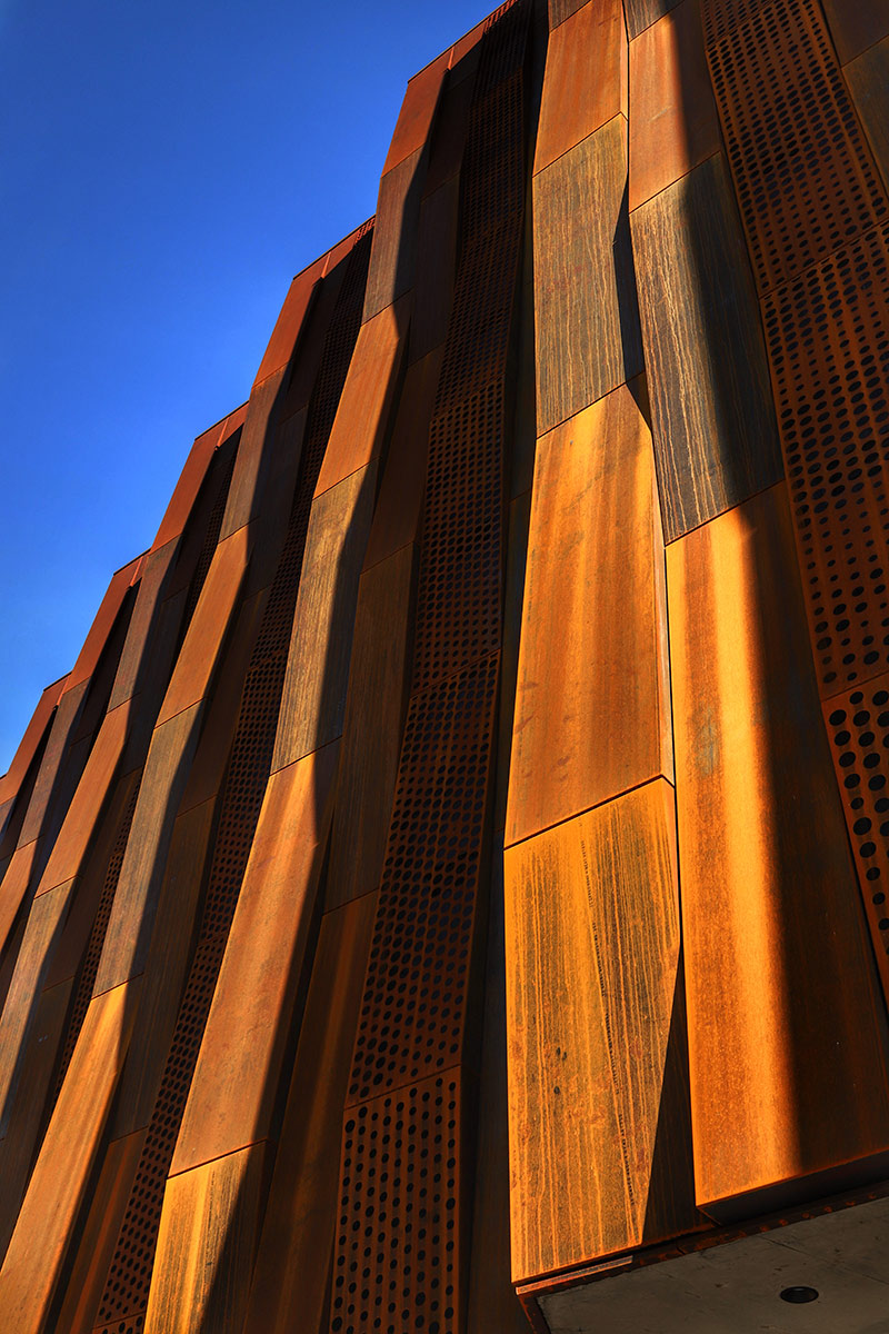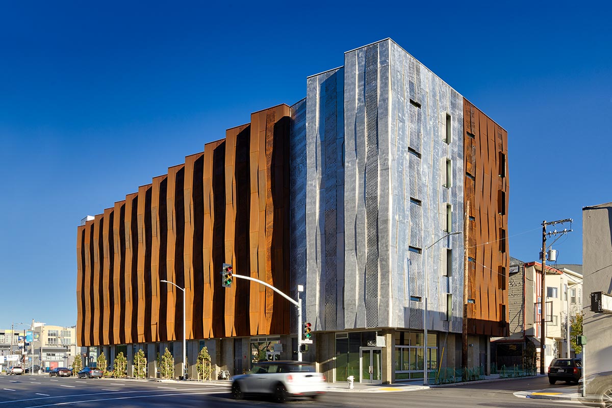 For this community housing effort at 833 Bryant Street in San Francisco, EnFold Façade has fabricated striking, three-dimensional façade screens which cover all elevations of the building. Each panel is cut from Cor-Ten steel or aluminum. The deep rust color of Cor-Ten steel presents a striking contrast to the bright aluminum panels.